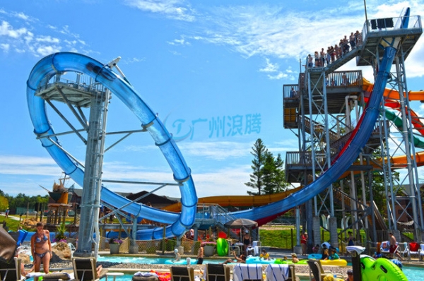水上滑梯大回環(huán)滑梯采用透光玻璃鋼材料,游客置身于緊閉的艙體內(nèi),隨著3·2·1的倒數(shù),腳底踏板打開,從16米高的平臺(tái)上通過水的潤滑作用,身體如同坐過山車般沿著幾近垂直的滑管高速滑行.具有強(qiáng)烈的視覺沖擊力及觀賞性,讓觀望者也膽戰(zhàn)心驚。
