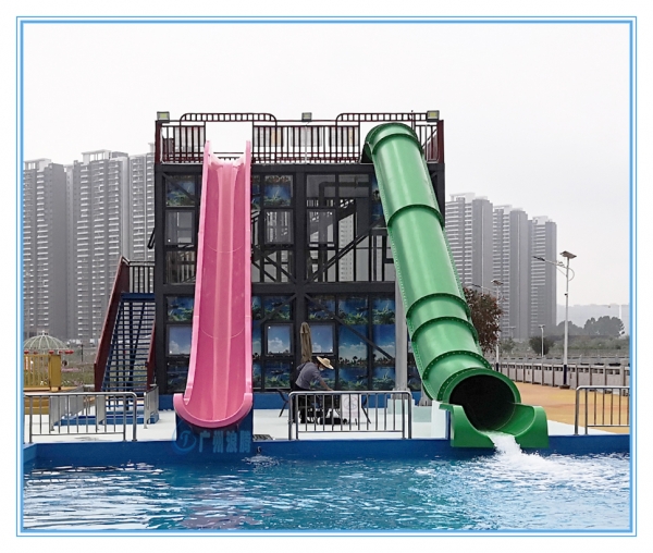 水上滑梯炮筒雪撬滑梯是經典的雙道組合滑梯,有造價底,占地面小,體驗獨特等特點。都可直接用身體滑行,炮筒滑梯不封閉的滑梯,進去后是看不見外面的黑洞,瞬間下沖到落水池當中,特別適合喜歡探險,挑戰速度的年輕人玩樂;雪撬滑梯為敞開式滑梯,末端有向上拋的趨勢,游玩時會有被上拋向前3~5米再掉到水池當中,體驗奇妙獨特,特別適合挑戰刺激的年輕人玩樂。有5米平臺和6米平臺可供選擇,雪撬滑梯內寬為:0.8米,炮筒滑梯內寬為:1米。